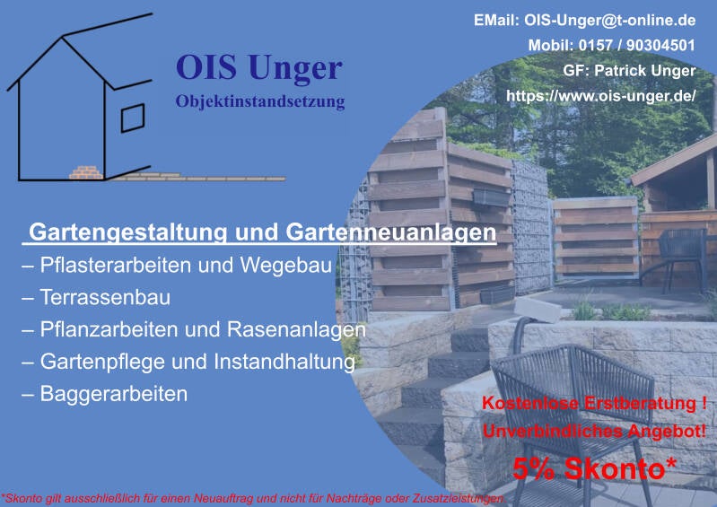 OIS Unger ist Ihr professioneller Partner für alle Arbeiten rund ums Haus. Wir bieten Ihnen kompetente Lösungen für Ihren Garten und Ihr Zuhause. Entdecken Sie jetzt unsere vielfältigen Dienstleistungen!